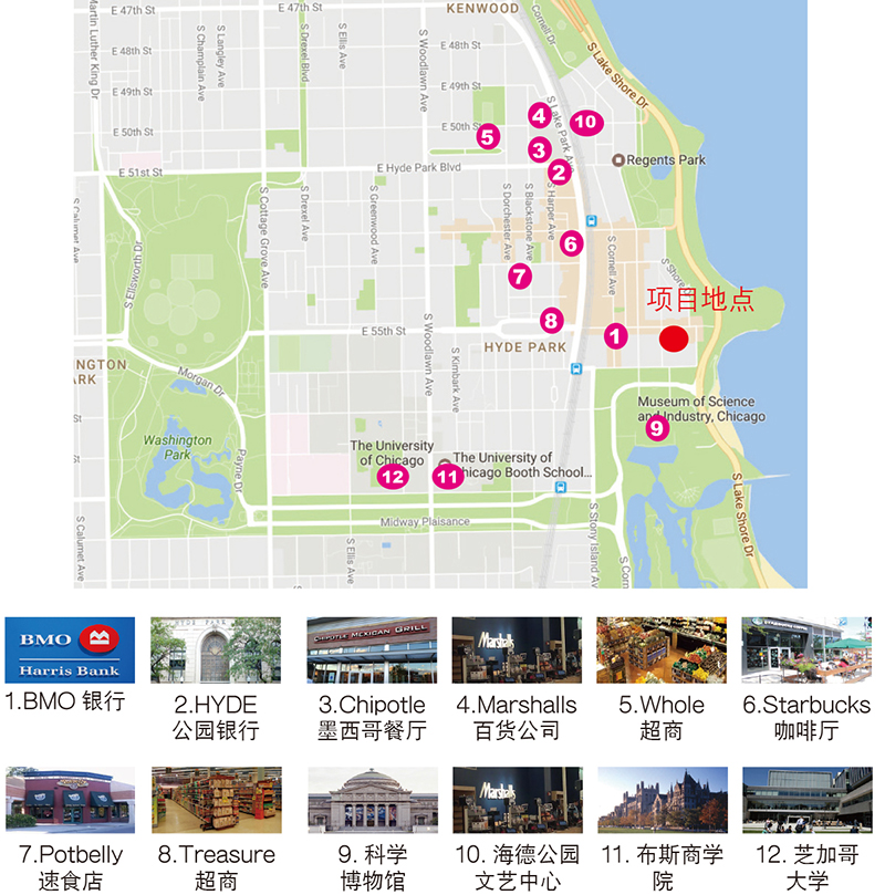 离芝加哥大学仅四个街口,(University of Chicago) ;
