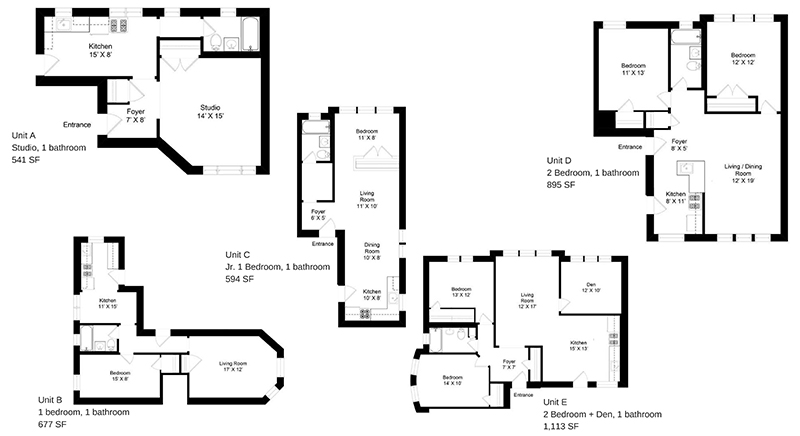 宿舍大楼位于E. 55街和EVERETT大街的交叉路口,两栋低层混合使用建筑。