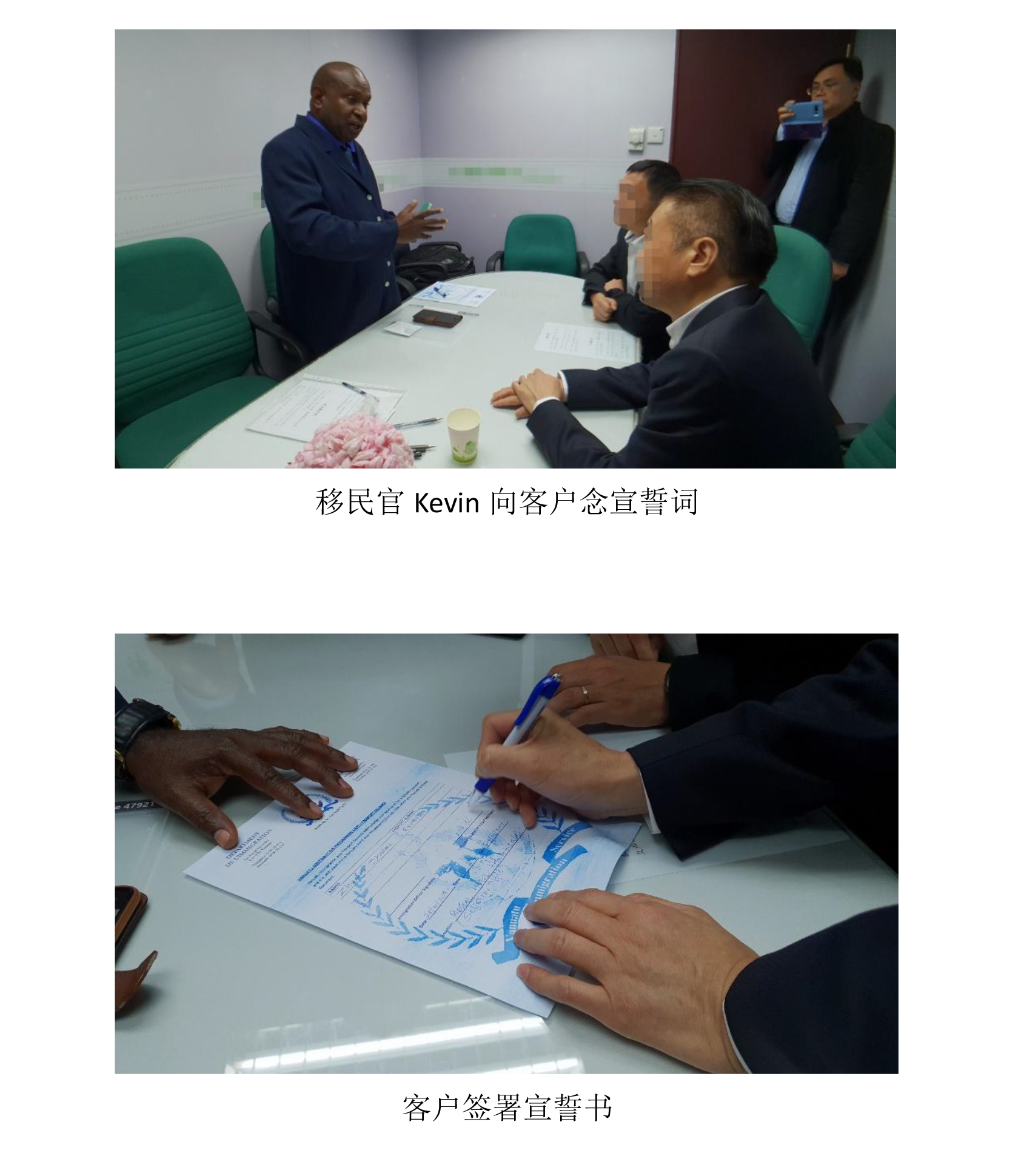 2019年1月24日,瓦努阿图移民官Kevin访问中国,并把护照带来现场颁发给客户A先生。